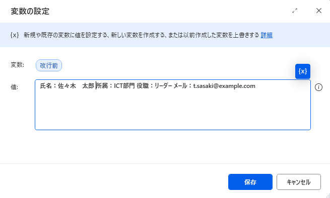 変数に設定されてあるテキストに改行を挿入したい「テキストを置換する」アクションにて改行を挿入することができます。また、タブなども挿入することが可能です。本コラムを参考にお試しいただけたらと思います。
