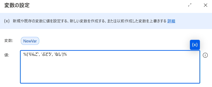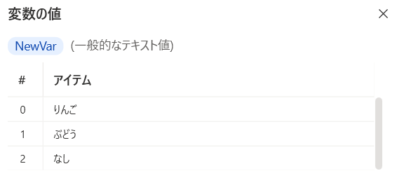 「変数の設定」アクション以外で「変数」カテゴリの「新しいリストの作成」、「項目をリストに追加」アクションを組み合わせることでもリスト型を定義することができます。活用場面としては繰り返し処理などで複数のデータを一つの変数に保持しておきたいときなどに役立ちます。